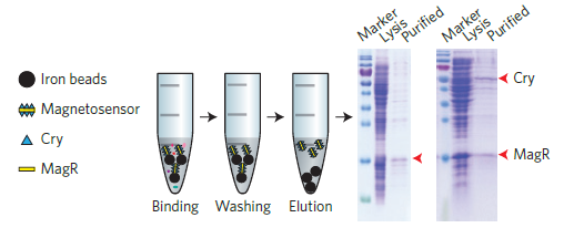 圖1. 利用海貍磁珠(BEAVER,70301)捕獲Cry和MagR實驗過程及效果。